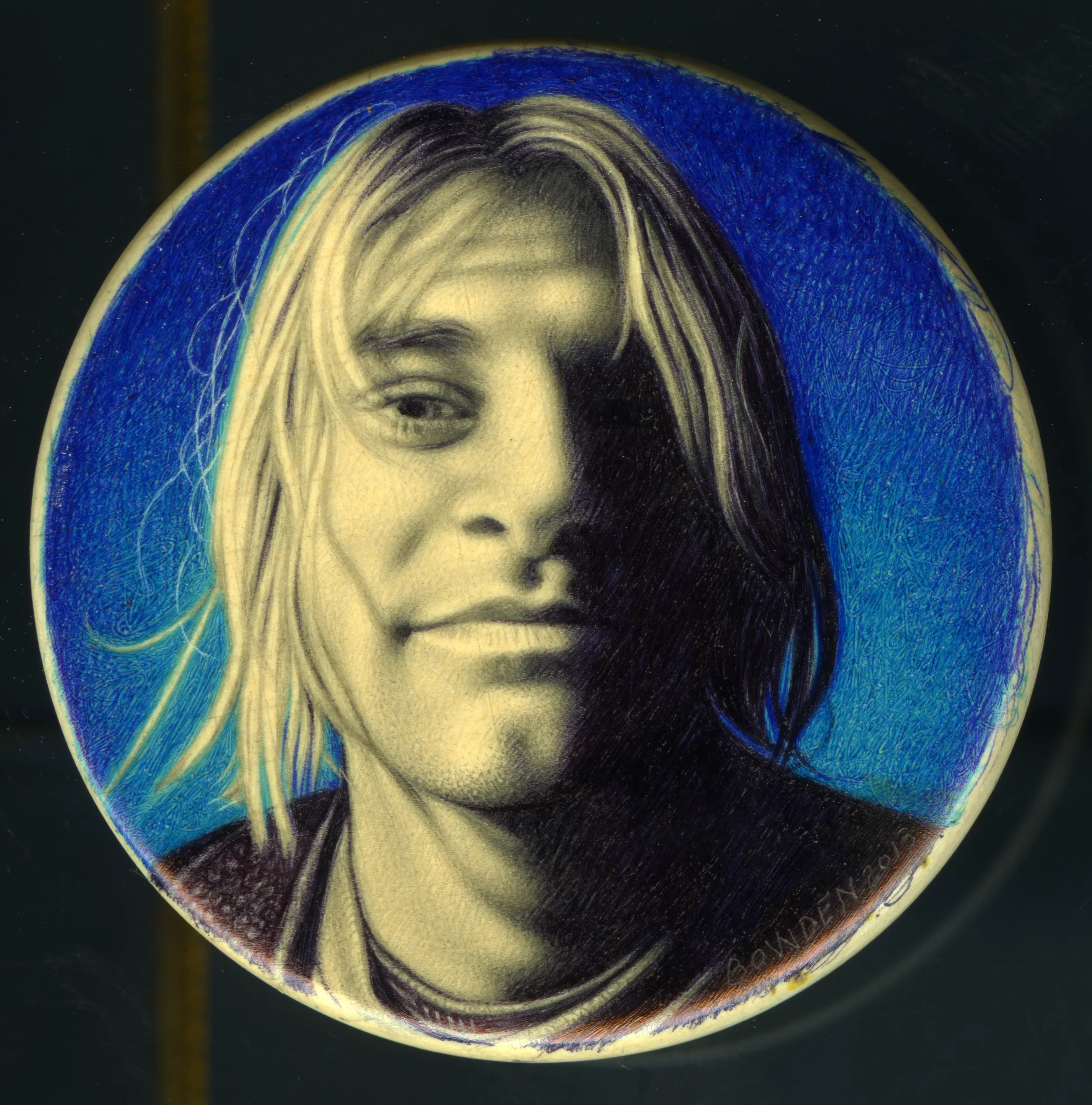 Pencil & Ballpoint Pen Drawing {on Clay Poker Chip}, 2013, 1 1/2 inches diameter