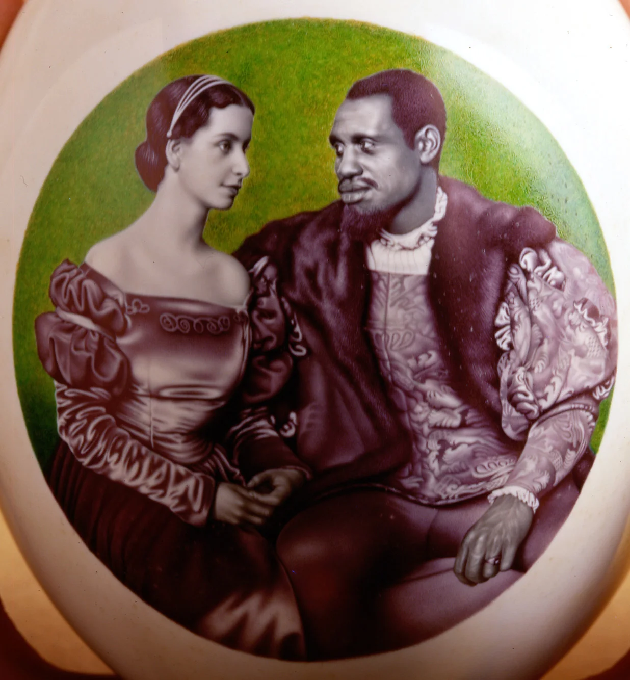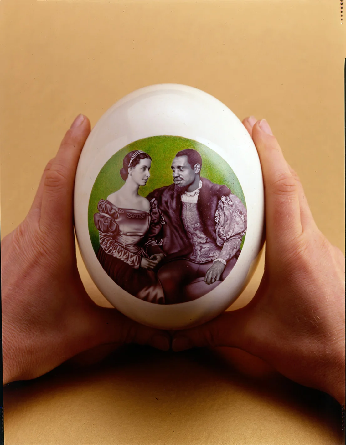 Robeson and Ashcroft, pencil & ballpoint pen & marker on Ostrich egg, 1999, 4.5 inches (drawing)